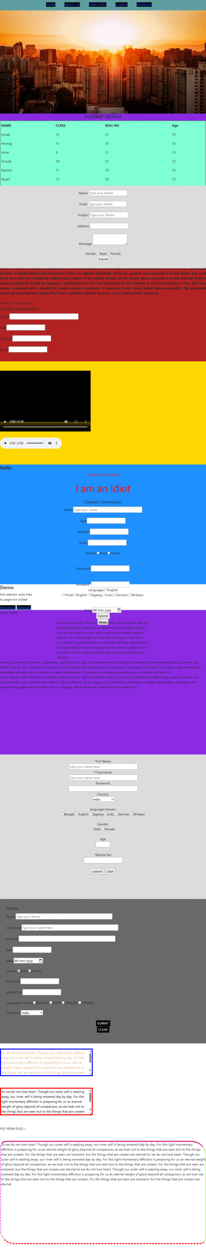 These are some of my very first web design practice pages — made back when I was just learning HTML and CSS. They’re simple and a bit untidy, but they remind me where my journey started. Every designer begins somewhere, and these works reflect my earliest steps before I moved into WordPress design.